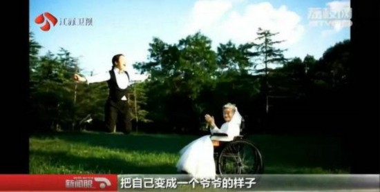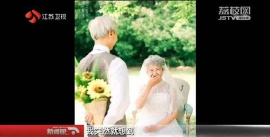 她突然想到:为什么不能扮成爷爷和奶奶拍婚纱照呢?这样,她在晚年生活中也会有一个念想,“让她再高兴高兴,回到少女年代”。