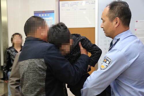 民警将小胡交还其家人 供图/临安区公安分局