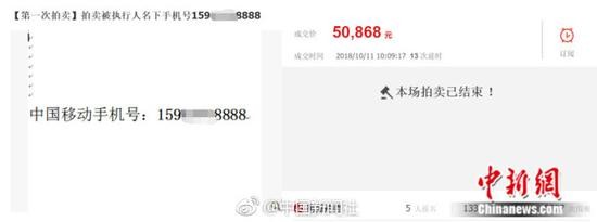 (原标题:“老赖”没钱还债?手机尾号8888网拍卖出5万元)