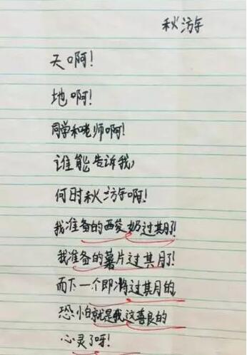 “何时秋游啊?我准备的酸奶过期了!”近日,一首题为《秋游》的小诗火了。诗的作者,是南京游府西街小学一五年级学生。据班级语文老师介绍,孩子经常自由创作,还有一个“诗社”。老师透露,学校秋游安排在下周三,已指日可待。