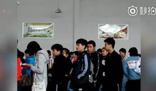 14日中午,湖南省衡阳县第一中学,学生们还未下课,食堂就聚集着许多送饭的家长。下课铃声一响,周末在校读书的高三学生们打着雨伞、手里拿着书和作业从教学楼一路狂奔到食堂,排队时也争分夺秒地看书背单词。