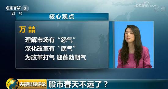 财经评论员 万喆:春天表示希望、表示改革,春天是深耕细作的季节,如果在这个时候能够深化改革、推进改革把这一块土地给孕育起来,使它能够有活力、有动力,企业能够百花齐放这个才是目标,我认为证监会目前在做的监管都是朝着这个目标,而且还在不断深化,从这个基础上来说,我相信这个春天要来。