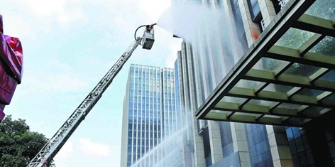 昨天,消防人员操作消防设备“扑灭综合体火灾”。当天,滨湖区大型综合体应急救援疏散演练在山水城举行,本次活动旨在加强和促进应急管理,预防和减少火灾的发生和危害,提升辖区各园区员工应对火灾等突发性事件的处置能力。