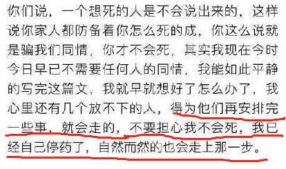 文中提到“来生”“停药”“走上那一步”等说法
