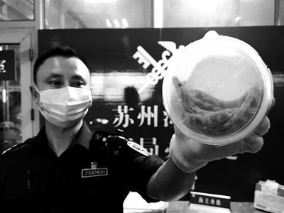 苏州海关查获国家一级保护动物黄金蟒1条。陈树雷 摄
