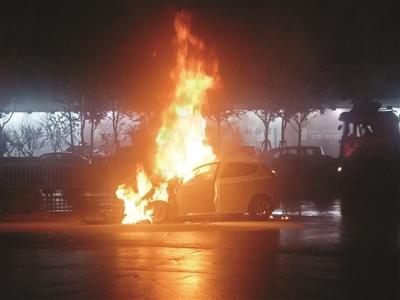 雨夜,小轿车突然自燃