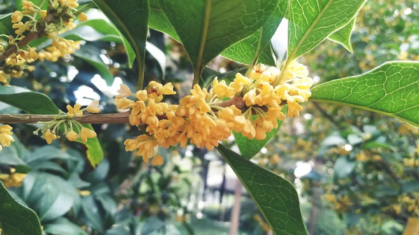据了解,目前楚秀园里共有金桂、丹桂、银桂、四季桂等四个桂花品种,总计200多株,分布在公园芙蓉桥和映晖桥附近,由于前段时间天气异常,导致今年桂花开放时间比往年偏晚。