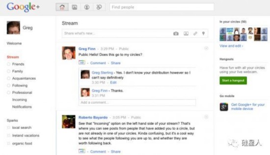 与其他社交产品的明显不同是,这些团队里工程师文化浓烈。 这使得刚出现在大众面前的 Google+看起来更酷,和 Facebook 等传统社交网站的气质完全不一样。