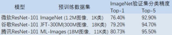 注:微软ResNet-101模型为非迁移学习模式下训练得到,即1.2M预训练图像为原始数据集ImageNet的图像。