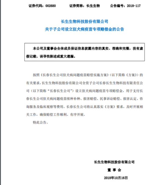 以下为长春长生公告内容:
