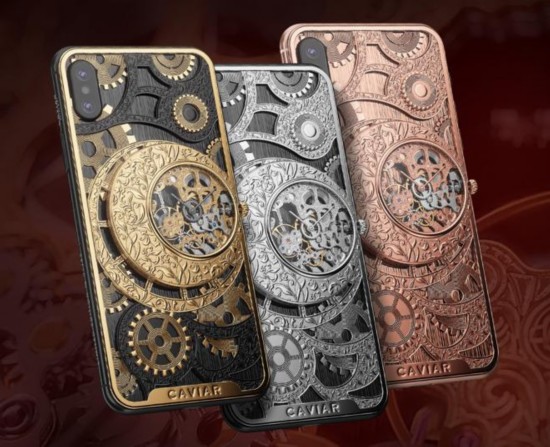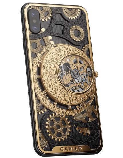 俄罗斯奢侈定制厂商Caviar推出了别出心裁的GRAND COMPLICATIONS奢华定制版iPhone Xs和iPhone Xs Max,其后盖采用复杂的机械表齿轮造型,后盖内嵌一枚可活动的机械手表。GRAND COMPLICATIONS奢华定制版iPhone Xs和iPhone Xs Max有黄金、玫瑰金、钛三种设计配色,每个设计仅限量99台
