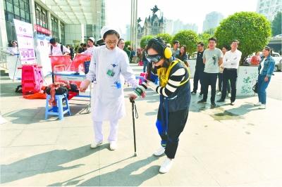 武汉晚报讯(记者伍伟 通讯员张玮)17日是重阳节,武汉协和医院老年病科联合药剂科举办大型义诊活动。现场特别设置了体验环节,多名年轻人穿上特制体验服,亲身感受老年人在日常生活中的各种不方便。