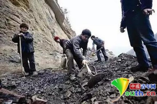 清早八点多上工,直至深夜才回家。为了节省时间,大家就用烤土豆作午饭。离工地近一些的村民,就在家里煮好米粥,端到工地上分给大家。“有时候会感觉做不动了,没有物资,撬也撬不动,打也打不动。”