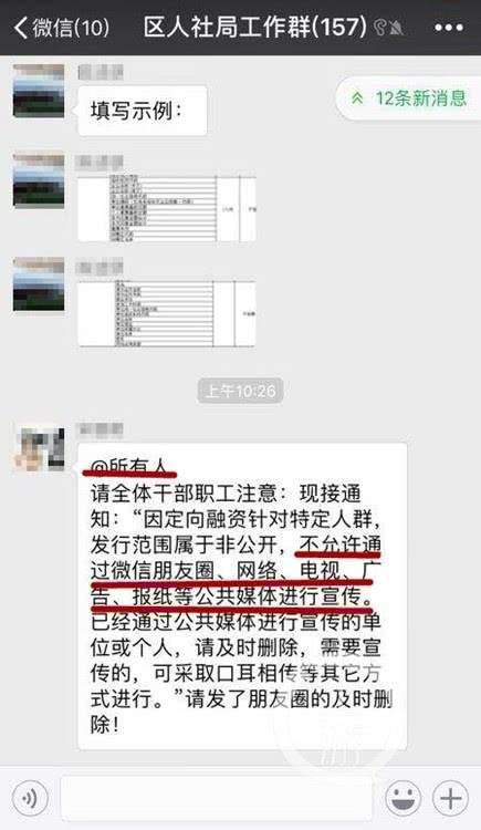 网传保山隆阳区人社局工作群里要求不得对外传播定向融资的情况