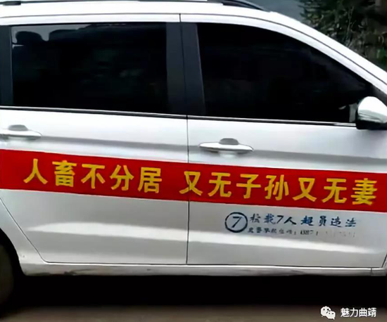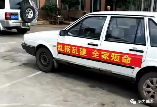 日前,一自媒体发文称,云南省曲靖市富源县惊现诅咒式标语。文内视频显示,在十余辆小轿车和皮卡车上,贴着诸如“乱搭乱建全家短命”、“不出义务工全家无祖宗”、“人畜不分居 又无子孙又无妻”、“农民不要闹 环境卫生最重要”之类的数十条诅咒式标语,内容为要求农民搞好环境卫生、参与村集体义务工、主动缴纳卫生费。