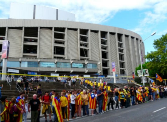 赛前响起1992年巴塞罗那奥运会主题曲,为了纪念两周前刚刚过世的传奇女高音歌唱家蒙特塞拉特卡巴耶。优美有力的女高音响彻球场,歌词里唱尽对城市的赞美和爱。相信千里而来的球迷们,即使身为外来人,也会为之感动。