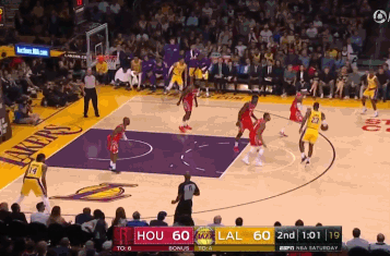 腾讯体育10月21日讯 2018-19赛季NBA常规赛继续进行,湖人主场迎战火箭,两队在赛季首战都未能取胜。半场战罢,火箭66-62领先湖人。