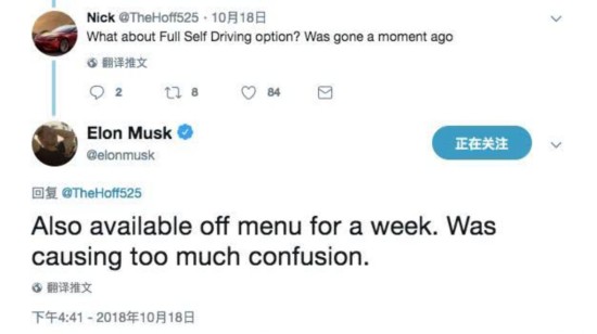 马斯克:全自驾车选项会让客户有些懵,撤掉吧