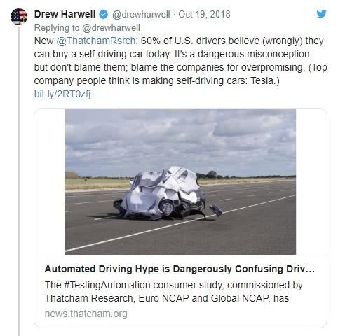 民调结果显示,美国大部分驾驶员认为现在可以买到真正的自动驾驶车,而其实并不能,这是很危险的。