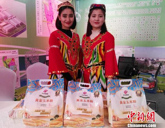 经贸洽谈会上,美丽的姑娘推介特色产品。戚亚平 摄