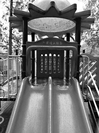 10月22日,长江日报记者来到事发滑梯,此时滑梯上的黑色记号笔涂鸦已经被灰色涂料完全遮盖,事发滑梯上写有“严禁成人玩耍”的字样。原本黄色的圆顶就像遮上了一片乌云。