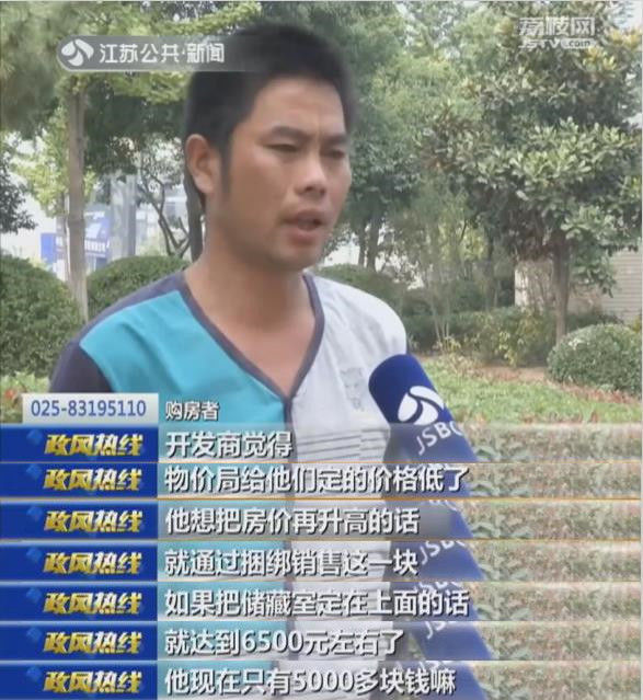 睿博融城小区购房者:“开发商觉得物价局,给他们定的价格低了,他们想把房价再升高的话,就通过捆绑销售这一块,如果把储藏室定在上面的话,就达到6500元左右了,他现在只有5000多元。”