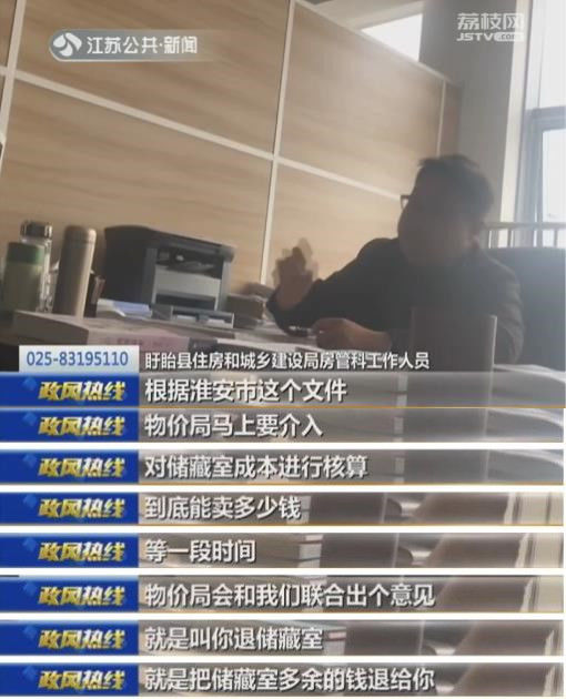 盱眙县住房和城乡建设局房管科工作人员:“目前物价局那边正在对储藏室进行定价,定价之后我们立即要求开发商整改,差价肯定是要退还的。”