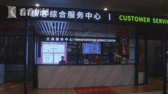 虹桥机场2号航站楼到达大厅,全新的机场交通服务中心已经落成,将为中外来宾提供交通出行方式咨询,告诉旅客如何通过交通换乘抵达到国家会展中心。