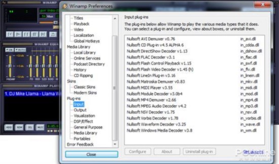 Winamp 5.8的使用和之前的版本功能并没有太大区别,支持媒体库,支持各种插件和皮肤。开启功能设置,可以看到密密麻麻的选项,自定义程度还是相当高的。