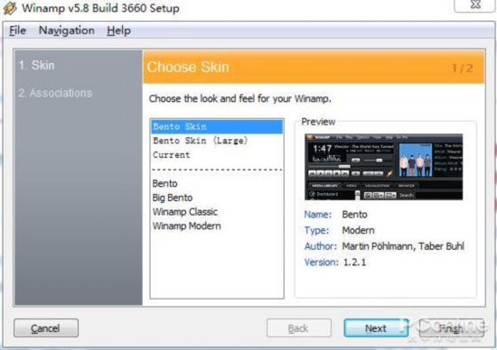 Winamp 5.8安装和旧版并没有什么区别,也没有捆绑软件。安装后,会让你选择皮肤和文件关联。
