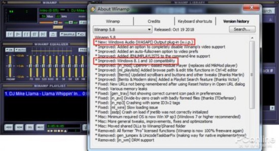 Winamp 5.8另一个更新是支持Win8.1、Win10系统,终于跟上了时代的步伐。除此以外,更新内容以修复Bug为主,并没有太多新鲜玩意儿 。