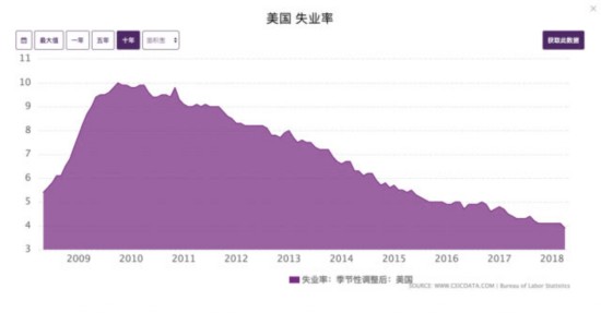 随着美国经济复苏,美国失业率从10%一路将至4%左右,9月份更是创下历史新低3.8%,有成千上万的就业机会需要填补。为了吸引工人,许多公司在2018年不得不提高最低工资标准。