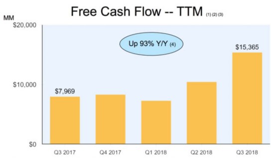 贝索斯认为,财务报表上的数字利润不是公司的核心能力,一个公司的核心能力是自由现金流,你有多少钱能够支付到对未来的投资上去,这才是决定公司价值的最核心指标。如果按照亚马逊自己的标准来看,它的自由现金流同比增长73%,