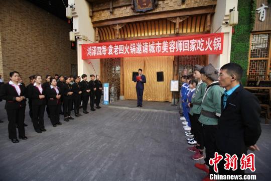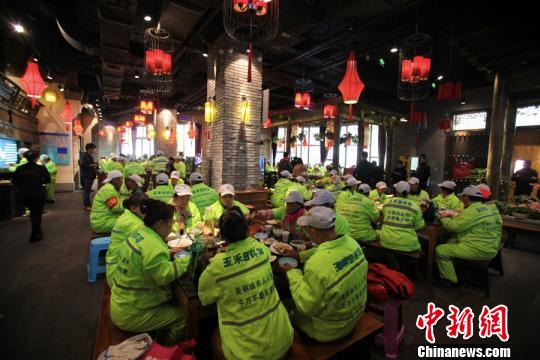 火锅店里热气腾腾,3000多名环卫工人共度了一个暖心节。额丽其格摄