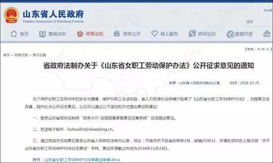 三、通过信函方式将意见寄至山东省人民政府法制办公室,地址:济南市历下区省府前街1号,邮编250011,并请在信封右上角注明“关于山东省女职工劳动保护办法征求意见”字样。