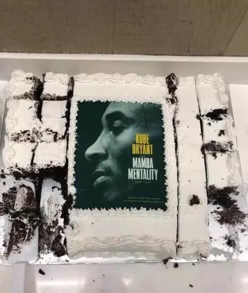 赛前斯台普斯球场的媒体室里惊现一个大蛋糕,蛋糕上用奶油画了一个科比新书的封面。这是科比与湖人队特意为到场的媒体朋友准备的甜点,服务如此贴心细致,不可谓不走心。