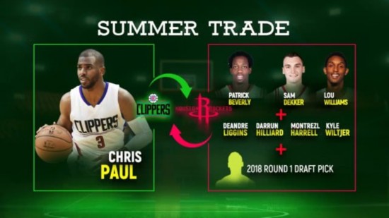 2017年夏天,火箭先是做了几笔小交易,从活塞换来希利亚德,从独行侠换来了利金斯,只为配平薪金换保罗。随后,火箭用贝弗利、德克尔、哈雷尔、希利亚德、利金斯、路易斯-威廉姆斯、维尔杰、部分现金和一个2018年的首轮签换来了保罗。