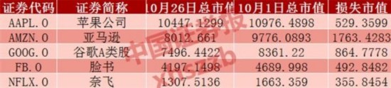 美国科技巨头组合FAANG中,苹果、亚马逊、奈飞也无一幸免。26日,奈飞下跌4.17%,脸书下跌3.7%,苹果跌幅1.59%。自10月1日至今,FAANG市值共计蒸发逾4000亿美元。