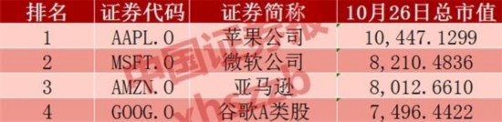 但10月26日,亚马逊创4年来最大单日跌幅,较前一日的8692亿美元市值跌去679亿美元,最新总市值降至8013亿美元。在市值上被微软公司反超,谷歌最新总市值也与之相距不远。