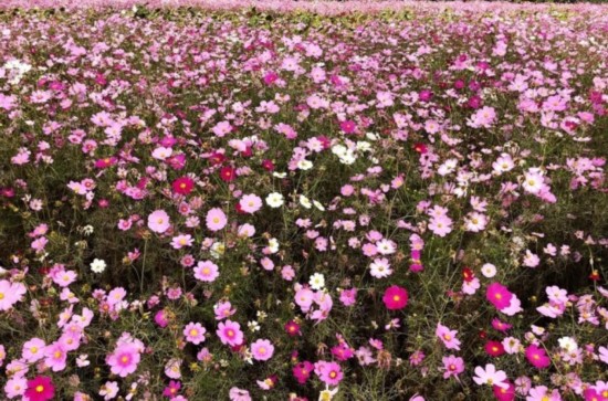 现在正是波斯菊的最佳观赏期,园区通过调节播种时间来增长波斯菊开花的时间,今年的9月至11月是波斯菊的最佳观赏期,来年的4月至6月也将是波斯菊的观赏期。