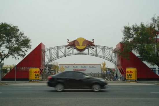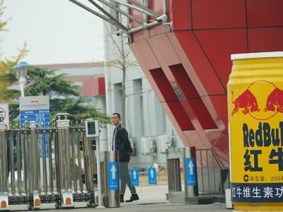红牛中国大门口,两头牛对顶的logo如今让人浮想联翩