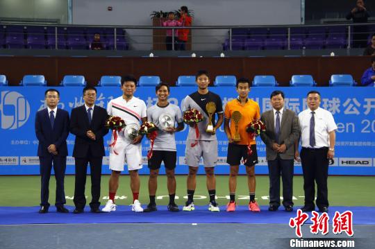 ATP男子挑战赛男子双打颁奖仪式现场。朱柳融 摄