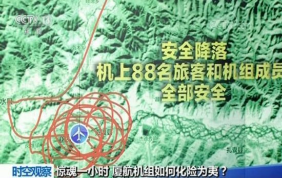 在空中盘旋了近一个小时后,该飞机成功着陆,机上88名旅客和机组人员平安落地。