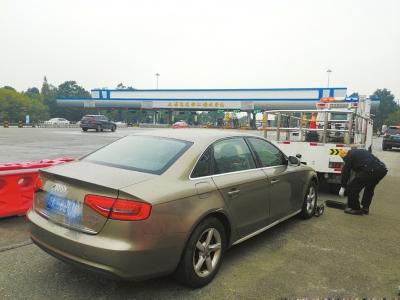 10月27日8时许,在成灌高速都江堰收费处,这辆川A牌照的香槟色车辆被拦下。经查,该车竟有124条交通违法没处理,民警依法扣留了该车,将做进一步处理。