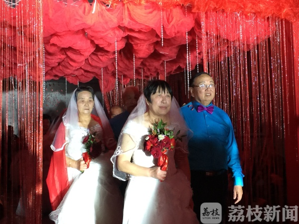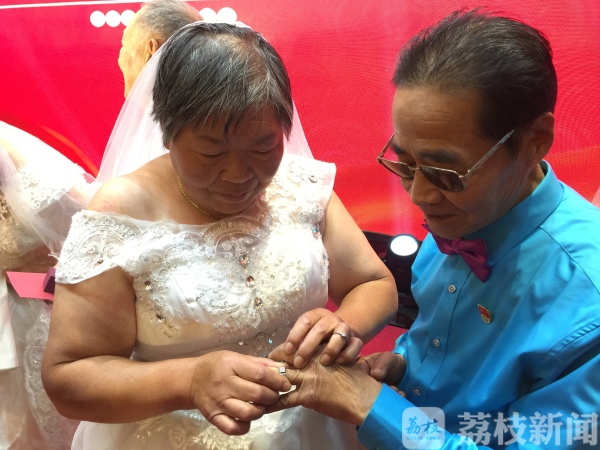 陆迎龙与蔡寿凤老人于上世纪60年代初结婚,当时的婚房是在学校的保管室用柴巴隔了几平方米的地方,现在自己和孩子都住着漂漂亮亮、窗明几净的楼房,家里还有五六辆汽车。这几年,老两口一起游历祖国的大好河山,品尝各地的风味小吃,日子过得有滋有味。陆迎龙老人说,这次能参加老年集体婚礼,也算是对当年贫困生活缺憾的一种弥补吧,同时也提醒大家要更好地珍惜今天美满幸福的生活。