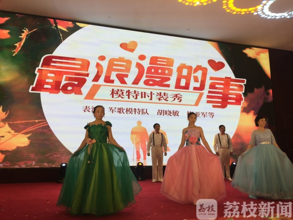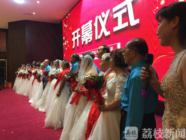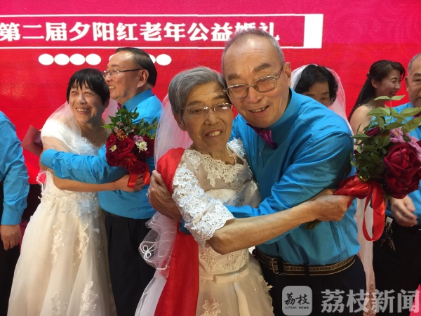 “我能想到最浪漫的事,就是和你一起慢慢变老”,是传唱度很广的歌词。今天(10月28日)晚上,在盐城市千鹤湾温泉小镇18对老年夫妻手挽着手,一起走过红地毯、相互佩戴婚戒、热情拥抱,重温过往一段段温馨的时光,接受众多亲友来宾的祝福。这是盐城市第二届老年公益婚礼的现场。“没想到爸爸妈妈这么认真,这么光彩夺目!给他们补上一个婚礼,也算是弥补了过去贫困时代的遗憾。”一位中年女士感慨地说。