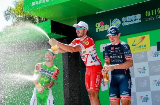 今年30岁的马尔科本法托对于车迷来说并不陌生,这位自2014年以来已经在中国赛场获得过13个赛段冠军的意大利冲刺手终于在海南收获了第一场环岛赛胜利,赛后他说:“今天平路赛段是由我和贝莱蒂(Manuel Belletti)负责最后的冲刺工作。赛前我告诉他,我对自己的状态很满意,他说你应该去争取一下胜利。整场比赛我们都做得非常棒,最终冲刺时我的位置也很靠前。今天比赛速度非常快,终点前我意识到有顶风的状况,因此我在快接近终点线时大力冲刺,赢下来比赛!我有许多中国赛场的比赛经验,但这是我第一次环岛赛冠军,感觉太棒了!”