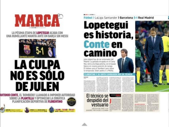其实洛佩特吉的下课还是有些冤枉,《马卡报》就指出,洛佩特吉并没有犯下太多错误,但是他只能离开,皇马将进入孔蒂时间。