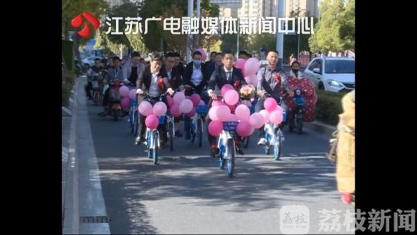 骑着共享单车上学、上班,小伙伴们都不陌生了,不过共享单车当迎亲座驾,你见过吗?27日,淮安街头就出现了这样的迎亲车队,十几辆装扮一新的共享单车一路排开,乖乖,那可是相当拉风呀!