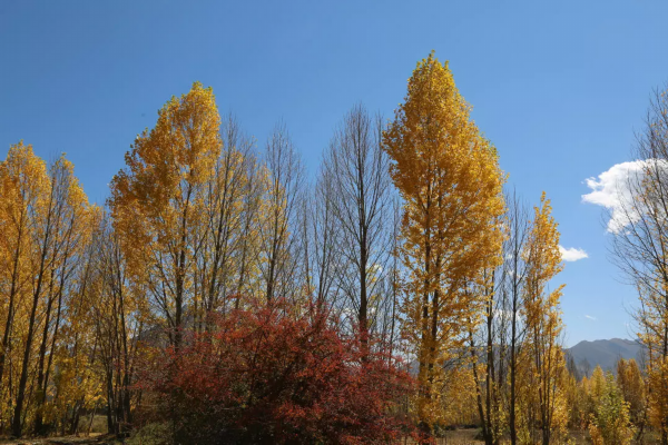 曲水赏秋地点:318国道沿线、色达村、动物园等地。本文图片拍摄地点为:出318国道,路口有色达村标志的那条乡村公路。 秋色不等人,请不要错过。
